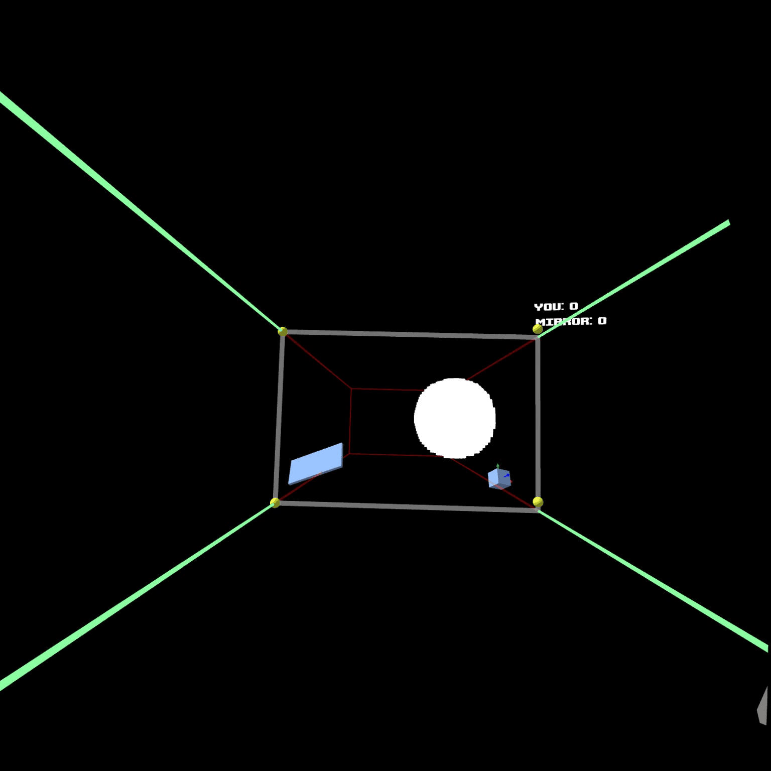 The ball is a physics-based object that travels continuously between real and reflected space. Scoring is depth-based: if the ball passes the deepest point of your reach in the real world, the reflection scores, and vice versa. This forces the player to maintain awareness of both spaces simultaneously.